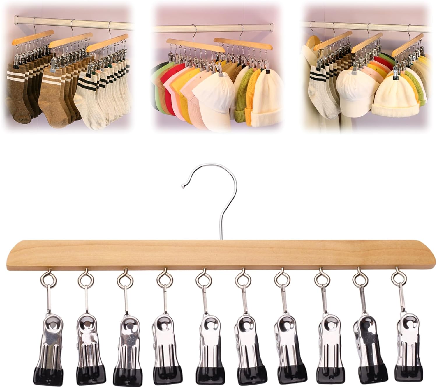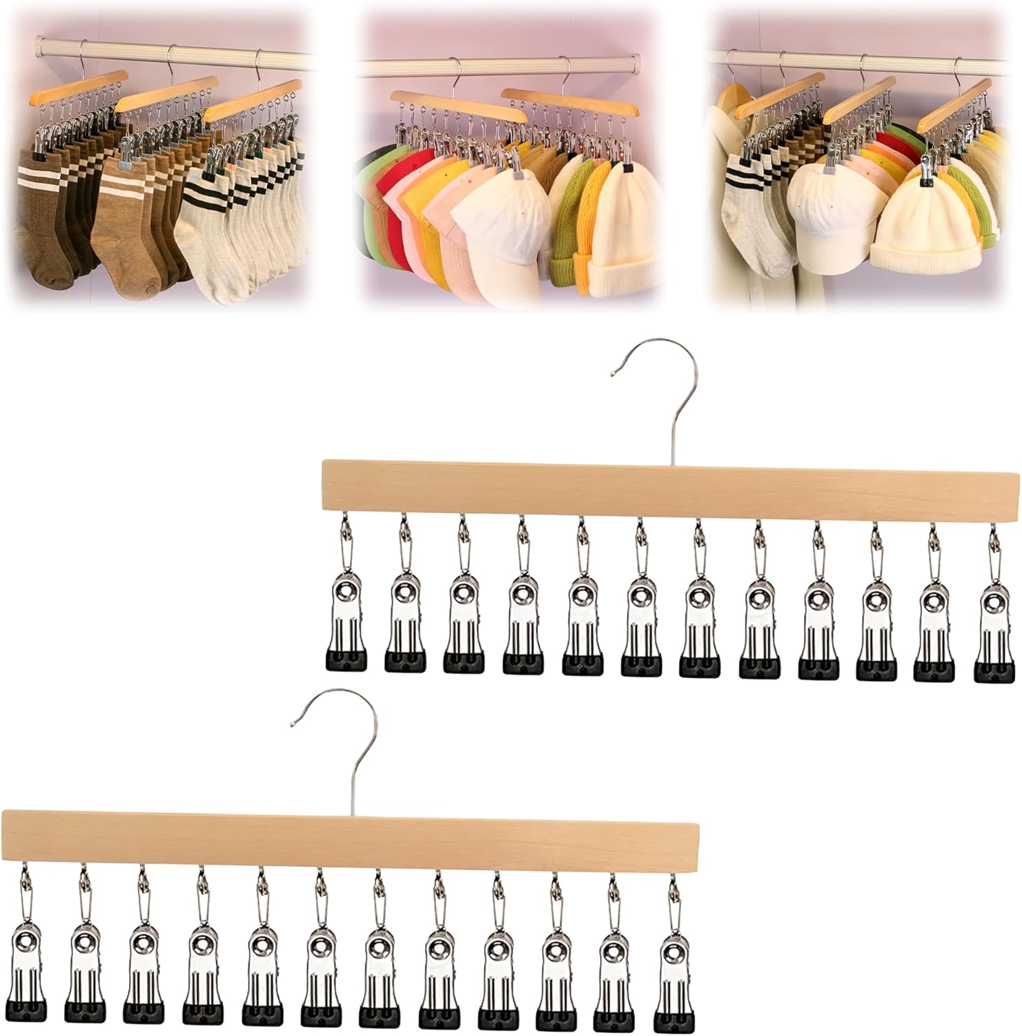 Closet Organizer, 2026 New Space Saving Hanging Closet Organizer, Hat Scarf Clothespins for Legging Jeans Skirts Socks Pant Hangers